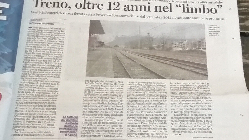 benritrovati a voi tutto bene? Spero di sì nonostante tutto eccoci qui ad informarvi sulla situazione attuale ebbene dopo un'anno e più ne sono successe di cose tra autostrade e bretelle denunce varie e raddoppio dei binari in altri luoghi e consigli di stato (ambientali e non) si muove a rilento e dopo tutto non si molla nemmeno a Terracina come potete leggere pnrr risolve problemi vari e ahimè dobbiamo vedere l'evolversi della situazione question time al governo anche per la Formia Gaeta tramvia permettendo sono state potenziate le altre stazioni e binari nel Lazio e la Roma Terracina sta lì nel limbo come dicono a Terracina comunque ringrazio sempre chi sostiene ciò con le firme e contribuito al finanziamento stesso (Ps firmate anche gratuitamente) ah ricordate Campoleone dove i passeggeri per via di un sottopassaggio stretto passano sui binari? e fa capire quanti bisogni e tanti non riescono a stare sulla fermata del treno come sardine ripeto alle istituzioni di fare il possibile con la concorrenza tra rfi, italo, arenaways, fondazione fs, regionale fs, ecc ecc di discutere e ridare un senso alle ferrovie laziali abbandonate al degradato pnrr è fondamentale (chissà anche rivolgersi al consiglio di stato) per far viaggiare turismo e merci in più parti vedremo continuate cosi