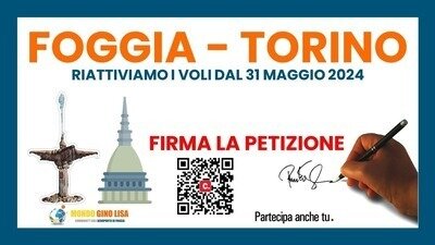 Mondo Gino Lisa è un'associazione che sostiene lo sviluppo e la crescita dell'Aeroporto di Foggia e di tutto il territorio circostante. Lavoriamo costantemente per rendere lo scalo "Gino Lisa" funzionante e sostenibile. Veniamo costantemente contattati da numerosi passeggeri ancora interessati al collegamento tra l'Aeroporto di Foggia e quello di Torino, che lamentano la disattivazione avvenuta ad inizio marzo 2024.