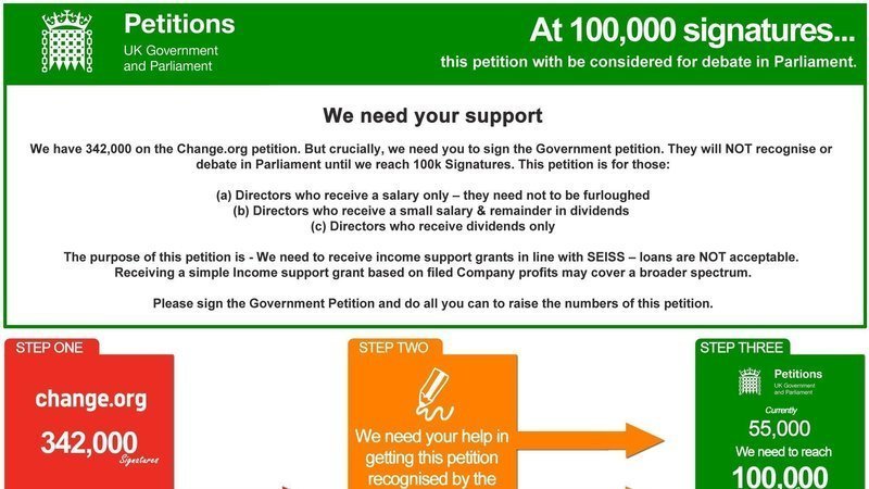 Also, if you haven’t already done so, share with ANYONE YOU KNOW (Doesn’t have to be a Director of a company – anyone who will support your cause) and particularly, those who are DIRECTORS or an EMPLOYEE of a small limited company. DIRECTORS, ask your OWN EMPLOYEES to sign the Government petition to support you, to support them. We need their support, they need to save their jobs too.