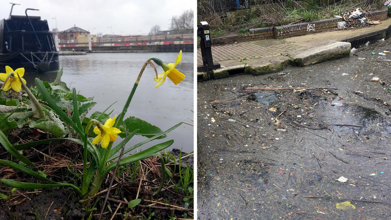 - It was a shockingly slow and frustrating process, but the majority of the oil from the February oil spill has finally been cleaned up and removed. Most doesn’t mean all of it, unfortunately. There is still some uncollected oily rubbish at Old Ford Lock – and still (or again?) oil on the river. The above photo on the right was taken today (Friday 13th April).