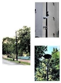 De plus, TOUTES les rues de la ville sont TRUFFÉES de ces appareils du modèle en forme de gond de porte, placés le plus souvent sur les poteaux d'éclairage.