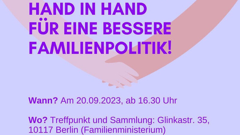 Es sind Bundestagsabgeordnete aus dem Familienausschuss aller demokratischen Parteien da, deswegen bitte kommt nach der Bildung der Familienkette unbedingt alle noch zur Kundgebung, um der Politik zu zeigen, wie viele wir sind und wie wichtig eine bessere Familienpolitik ist!