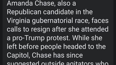 Senators Wittman and Chase chose, not a political party, but a false God. They chose the bankrupt coattails of Trump and supported his horrendous actions and horrendous inactions. They supported "very fine people" when White Nationalists murdered. They supported horrendous behavior by our fellow Virginians. They continue to support the actions of DOMESTIC TERRORISTS who, under the direction of President Donald Trump, as an act of what appears (until legally proven) to potentially be conspiracy, intent to incite a riot, intent to incite violence, domestic terrorism, rakateering, election fraud, voter suppression, and fraud. Wittman and Chase, while writing flowery public postings about being against the violence, directly helped to create it by blindly following the words of their leader Trump.