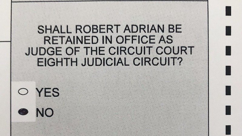 There will be a question which reads: SHALL ROBERT ADRIAN BE RETAINED IN OFFICE AS JUDGE OF THE CIRCUIT COURT EIGHTH JUDICIAL CIRCUIT?