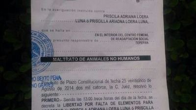 Exigimos la revocación del fallo de libertad otorgado el 25 de Agosto del 2014 a "Priscila Ariadna Loera Luna", maltratadora de animales, por parte del Juez Vigésimo Sexto de lo Penal, Licenciada Mónica Jazmín Gomez Espinoza. Quien a "falta de pruebas" ha otorgado la libertad a esta señora.