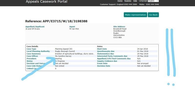 With your help we've won another victory in this long battle! After objections and protests from many people, and a request from Rugby Borough Council, the Inspector has decided to hold an informal public hearing and the appeal portal has been updated as you can see.