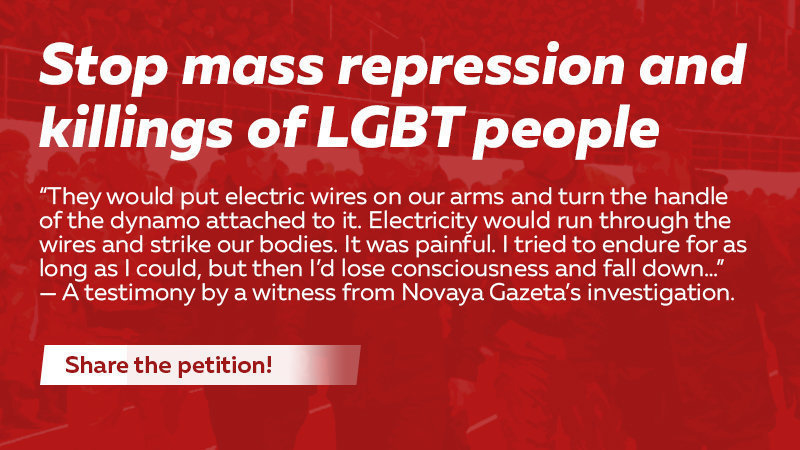 Petition updateRussia Prosecutor General, investigate mass murder and torture of LGBT people in ChechnyaHelp to stop mass reprisals!