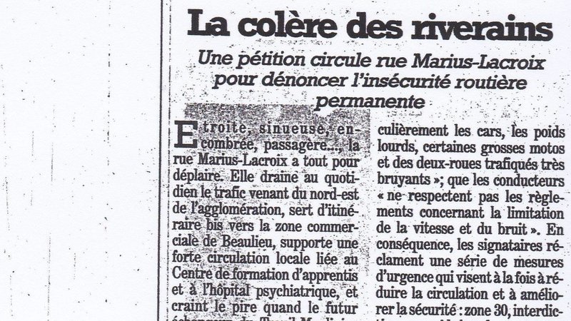 La dangerosité de la rue Marius Lacroix, ce n'est donc pas une découverte.