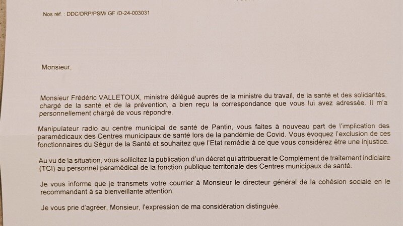 Mise à jour sur la pétitionSégur de la Santé pour les Centres Municipaux de SantéVisualisation nette de la lettre du ministère de la santé