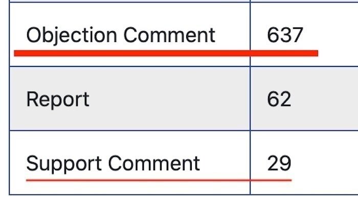 As of today, there are 637 Objections vs 29 in Support. I read every one of the 29 yesterday and counted at least eight that were suspiciously similar in style. They may even have been cut and pasted from text suggested by a developer. God forbid. Many others were distinctly confused about the issues and offered no credible reason for supporting OBB.
