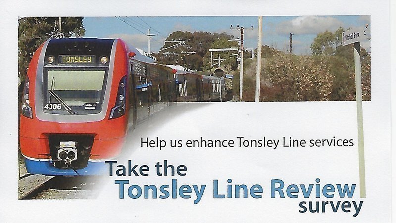Please participate in the latest, urgent, Tonsley Line Review Survey which is being conducted by the DPTI and linked here: