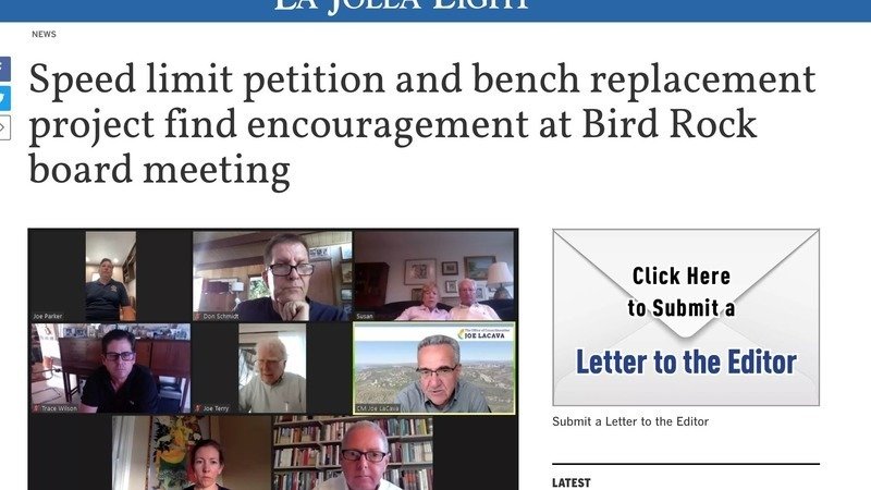 And thanks to #BirdRockCommunityCouncil for having us on the agenda this month. Great reception and encouragement, see the headline above from La Jolla Light.