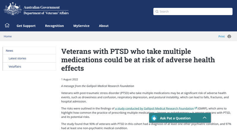 Atualização do abaixo-assinadoSafer Veterans Australia – No More Zombie Veterans CampaignDVA advises that veterans taking multiple medications are at risk of adverse health effects