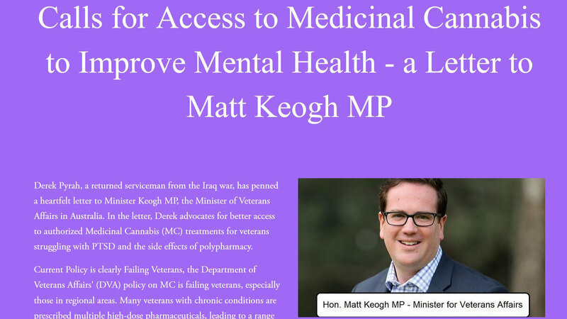 Instead of looking after the health and wellbeing of our disabled veterans and war heroes on behalf of a grateful nation, DVA and Minister Matt Keogh's blanket policy of “no medicinal cannabis for any mental health condition” is forcing our veterans to remain on a polypharmacy medication regimen that overwhelming scientific evidence and lived experience shows is making their conditions worse and is driving some veterans to suicide.