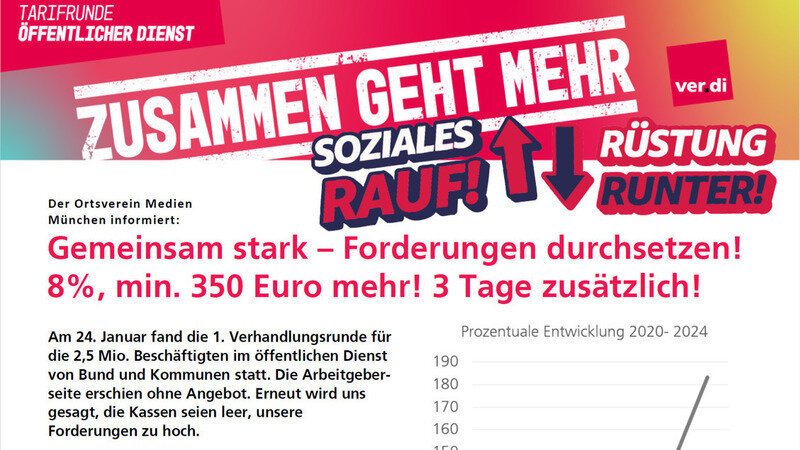 Die aktiven Kolleg*innen der ver.di-Fachgruppe Medien in München wissen es besser. Das zeigt ihr aktuelles Flugblatt, das sie gerade in den Betrieben und auf den Straßen während der Warnstreiks verteilen. Darin heißt es unter anderem: