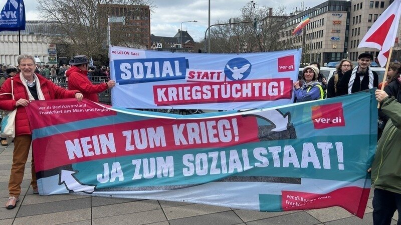 So begrüßt der DGB in seinem Ostermarschaufruf „die Notwendigkeit, in Deutschland und Europa verstärkte Anstrengungen zu unternehmen, um gemeinsam verteidigungsfähiger zu werden.“ Damit widerspricht er dem Anliegen der Ostermärsche in offenster Weise und echot dabei nur schlecht verdeckt durch die pflichtschuldig Richtung Kriegstreiber auch geäußerte Bitte ´Militarisierung stoppen´ die Forderung des SPD-Kriegsministers Pistorius und des kommenden Kriegskanzlers Merz nach „Kriegstüchtigkeit“.