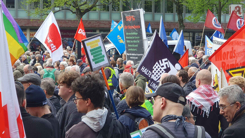 So wurde zum Beispiel aus Lübeck bekannt, dass der dortige DGB-Vorstand von Standanmelder*innen für deren Teilnahme an der 1. Mai-Kundgebung unter anderem verlangt, dass diese sich ausdrücklich mit Positionen „identifizieren“ müssen, die als „unsere Positionen“ – also DGB – deklariert werden. Dies sind unter anderem: „Uneingeschränkte Solidarität mit der Ukraine – Wir erkennen W. Putin als alleinigen Aggressor; Bekenntnis zu Europa und zur NATO-Mitgliedschaft; Bekenntnis zur Richtigkeit des Sondervermögens, um in die Zukunft zu investieren.“