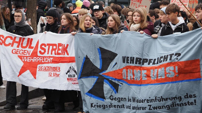 Am 5. Dezember haben wir zusammen mit über 40.000 engagierten Schüler*innen, Auszubildenden und jungen Erwachsenen unser NEIN! gegen Kriegsdienst und alle Zwangsdienste in über 80 Städten in ganz Deutschland auf die Straßen getragen. Auch viele Gewerkschafter*innen waren dabei.