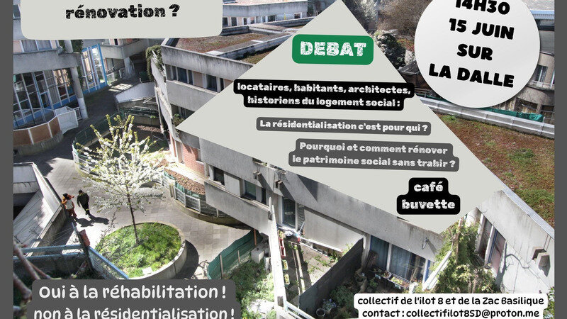 Nous organisons le 15 juin un débat-rencontre entre locataires, dionysiens, architectes et historiens de l'habitat social sur notre dalle. Plusieurs historiens de l'architecture, maîtres d'oeuvre et/ou coordonnateurs et bâtisseurs de la Zac Basilique sont annoncés et vont venir dialoguer avec les locataires le 15 juin sur réhabilitation, protection du patrimoine, politique du logement social… . Des élus ont prévu d'apporter leur soutien et de participer à la réflexion. Venez participer, apporter votre témoignage de dionysien, votre soutien à notre lutte.