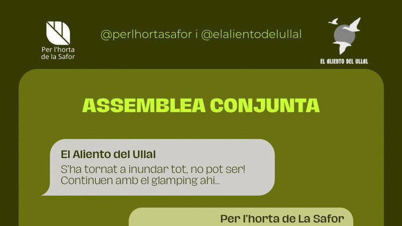 - Este viernes 14 de noviembre a las 19h es la asamblea conjunta a la plataforma Per l'Horta de La Safor. Si has perdido la motivación por la vida, quizás los protagonistas de este vídeo te animan a venir. Es importante. Aunque no lo veas es muy importante que vengas. Y si no puedes venir, que nos mandes tu amor, reces una madrenuestraqueestásenlatierrasantificadaseatunombre...