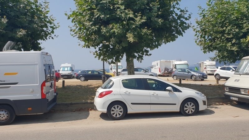 Aqui se ven coches aparcados, sin llenar de polvo el arenal, lindando la carretera, con diferencia de altura y bordillo, y vemos también las caravanas y los otros coches en el mismo paseo al borde del arenal. ¿Por qué se permite el aparcamiento, deteriorando la playa, llenándola de polvo, dificultando el acceso de las personas.... ¿realmente no hay otra opción?. ¿Qué rédito obtiene Nigrán , sus habitantes, sus visitantes de esto?. Realmente ¿no hay otro lugar donde estos vehiculos puedan estacionar próximo a la playa, pero no en la playa?.