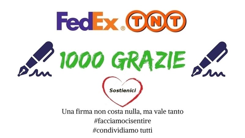 Eccoci qui! Ben 1000 firmatari che sostengono questa buona causa e che credono possa aiutare tutte queste persone che hanno sempre lavorato per l'Azienda che ora sta cercando di mandarli a casa. Come promotore della petizione, mi sento di dire che più alziamo la voce e più possibilità abbiamo di portare a casa una vittoria. Posso assicurarVi che, grazie a questa piattaforma, ogni traguardo raggiunto verrà notificato a FedEx Express Italy SRL quindi la nostra intenzione è stata manifestata, ora tocca a Voi. Il nostro obbiettivo è far riflettere tutti su quella proposta di licenziamento emessa. Mettiamoci a lavoro! Condividiamo la petizione e facciamo firmare chiunque, una volta raggiunto un numero di firme rilevante, possiamo muoverci e fare qualcosa di concreto per tutti.