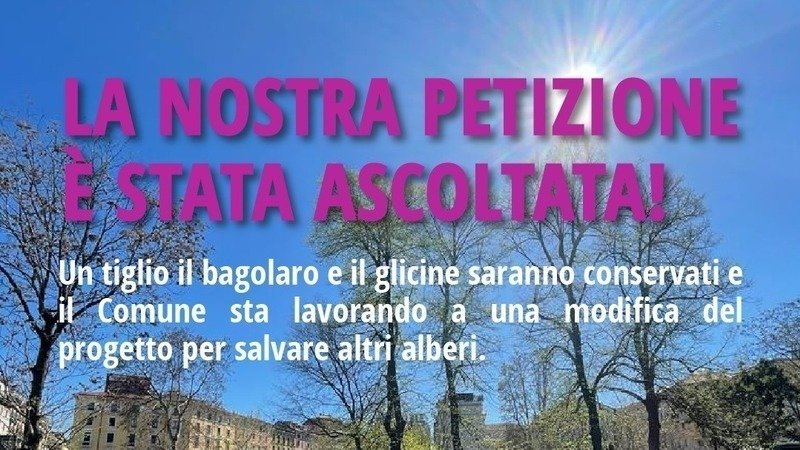 Siamo felici di annunciare che la petizione da noi promossa con le sue 52.000 firme ha raggiunto il primo obiettivo, ossia la convocazione di un tavolo tecnico su cui confrontarsi per fare convivere Museo della Resistenza e alberature, in linea anche con la posizione espressa dal presidente nazionale dell’Anpi, Gianfranco Pagliarulo. La proposta presentataci oggi dal Sindaco Giuseppe Sala e dai Suoi Assessori (salvaguardia della pianta madre del glicine, assieme al bagolaro e a un tiglio mentre è in corso uno studio per rendere possibile la salvaguardia di almeno altri due tigli) ci sembra una risposta che viene incontro alla aspettative che erano alla base della petizione. Il Comune si è inoltre impegnato a migliorare la qualità ambientale delle aree esterne del Museo e la connessione con il giardino comunitario Lea Garofalo.