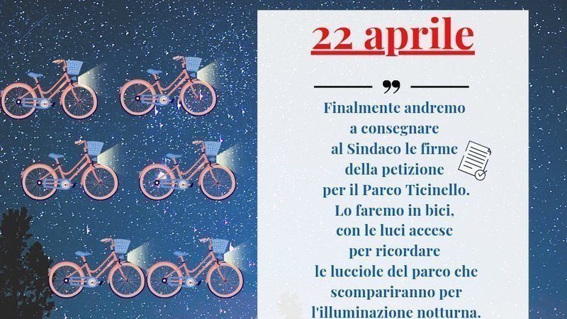 Vi aspettiamo giovedì 22 aprile, a piedi o in bicicletta con le luci che simboleggiano le lucciole del parco!