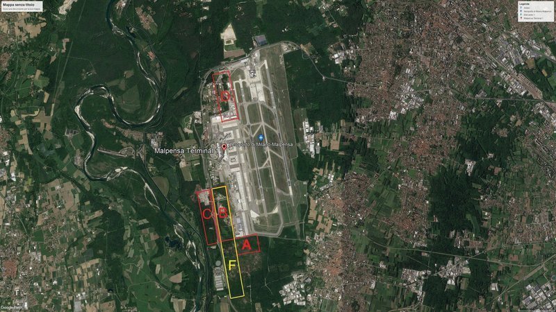 F Il riquadro F rappresenta tutto il sedime della brughiera che verrebbe distrutto con la realizzazione della Terza Pista.