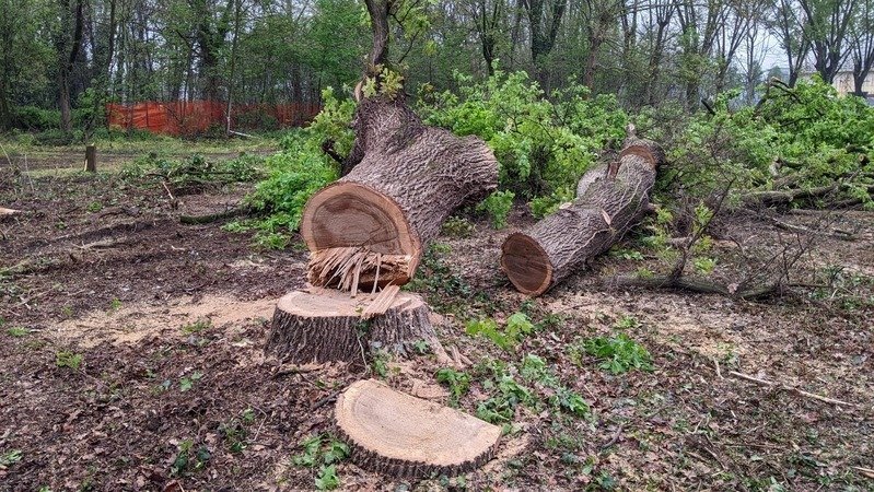 Con lei sono stati abbattuti altri 67 alberi del diametro superiore a 10 cm, ed anche almeno altri 500 alberelli più giovani.