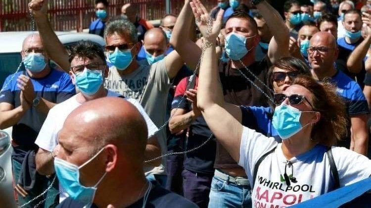 Ieri abbiamo manifestato incatenandoci vicino via Argine contro l’immobilismo del Governo. Un immobilismo che, appunto, ci tiene incatenati alle scelte dell’azienda, e che tiene bloccato il futuro dell’Italia e del Sud, specialmente durante una crisi economica da Covid-19.