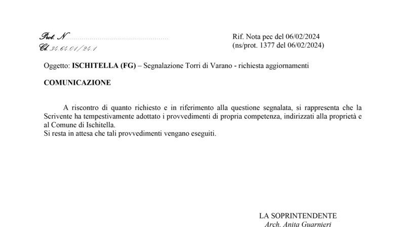 Petition updateSalviamo le Torri di Varano - i tesori del Gargano che stanno crollandoUn primo segnale dalla Soprintendenza Archeologia, Belle Arti e Paesaggio BAT e Foggia