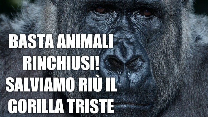 scrivo per chiedere il Suo intervento per la questione dell'anziano gorilla Riù rinchiuso in uno zoo pugliese, e in allegato consegno le oltre 200.000 firme dei cittadini che hanno firmato per chiederne la liberazione. Riù è chiamato "il gorilla triste" per la sua condizione di reclusione, non tanto per la solitudine in cui vive da circa quindici anni. Riù infatti è rinchiuso da tutta la sua vita, da quasi cinquant'anni, e non ha mai del tutto accettato di dover rinunciare alla sua libertà per essere utilizzato come attrazione. Riù è stato catturato nel lontano 1975 in Africa, portato via dalla sua terra, lontano dalla sua mamma e dalla sua famiglia. Era un cucciolo quando è stato rapito, aveva una mamma che amava e non ha più rivisto, probabilmente è stata anche uccisa per riuscire a portarlo via da lei. Riù era piccolo, aveva soltanto un anno, è stato incatenato, imprigionato, piangeva disperato e urlava spaventato durante la cattura, ma non hanno avuto pietà. Era un cucciolo di primate, era un bambino, hanno ucciso la mamma davanti ai suoi occhi e lo hanno tolto all'Africa per portarlo in Italia, come un prigioniero, come uno schiavo. Riù è rinchiuso nello zoo Safari di Fasano, in un recinto di vetro. Riù ha visto la vita passargli davanti attraverso quei vetri, e poi andare via, mentre lui è sempre lì rinchiuso. Sente le risate, le provocazioni dei visitatori, "forza Riù batti i pugni"... risate... ci sono vari video che mostrano la sua situazione.