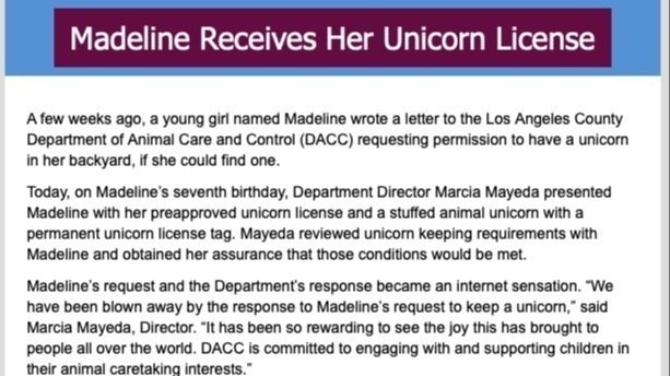 As animal pounds remain partially closed, Director of Los Angeles Care and Control is messaging media about UNICORNS AND STUFFED ANIMALS (see the attached image). After Director's Marcia Mayeda's 20 years of holding this position, you'd think her holiday newsletter would have something to do with saving our animals. Instead, she talking about adopting unicorns. So, instead of expecting anything from animal control this holiday, we need YOU to speak up for our abandoned animals.