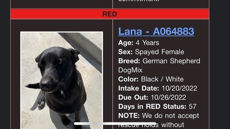 Animals marked status red are in imminent need for rescue/adoption due to the length of time in the shelter and/or behavioral or medical issues. These animals need a rescue/adoption commitment immediately. Contact the rescue coordinator during business hours immediately by email at rescue@cityofhesperia.us or by phone at 760-947-1700 to facilitate pickup if you are interested in a red tagged animal.