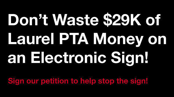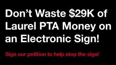 Those in favor of the sign feel this will increase communication to Laurel Families and we appreciate their point of view. Our stance is that given the many existing methods of electronic communication (email: eFolder and eBlast, voicemail, etc.), these funds could be better spent inside the classroom and directly benefit the children and the teachers.