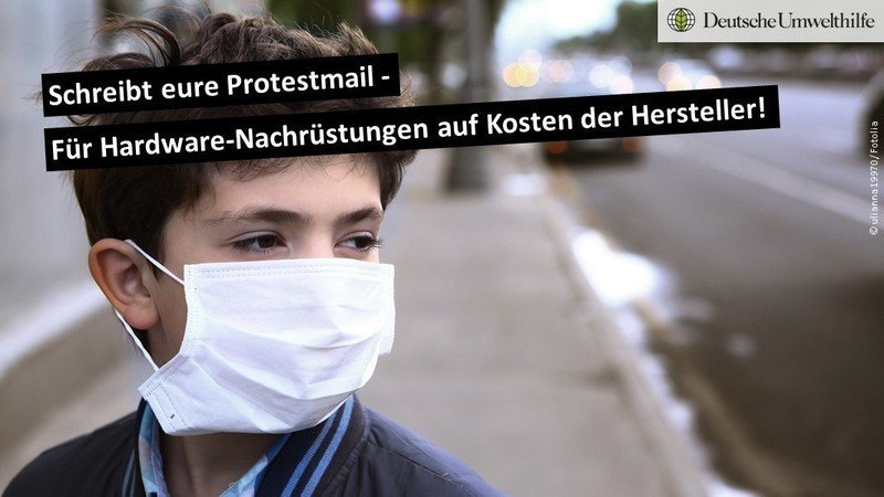 Wir haben alle ein Recht auf Saubere Luft! Bitte schreibt deshalb jetzt noch eure Protestmail an Andreas Scheuer. Wir brauchen saubere Autos – also echte Hardware-Nachrüstungen auf Kosten der Hersteller: www.duh.de/projekte/e-mail-aktion-fuer-saubere-luft/?&wc=CH Vielen Dank.