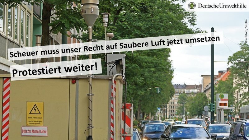 Liebe Unterstützer/innen! Heute hat der Europäische Gerichtshof (EuGH) eine wichtige Entscheidung getroffen: NO2-Messungen müssen an den Orten mit der höchsten Luftbelastung stattfinden. Denn wir haben ein Recht auf Saubere Luft! Wann begreift der Verkehrsminister das endlich? Bitte sagt ihm jetzt, dass er nachziehen muss – mit eurer Protestmail.