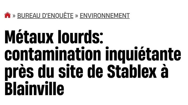 "Le ministère de l’Environnement a décelé des pics de contamination jusqu’à 269 fois plus élevés que les années précédentes dans l’eau près du centre de traitement de déchets industriels de Stablex, à Blainville."