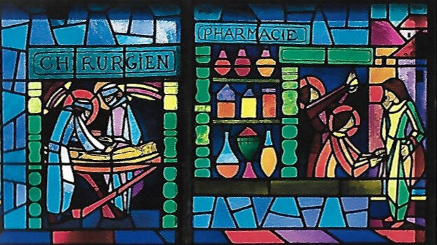 En illustration un autre vitrail de Louis Ribes, église Saint Côme et Saint Damien. Caluire (69)