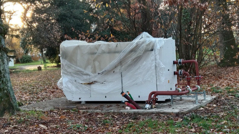 Le parc de l'Ermitage et ses habitants à plumes, à poils, à carapace et autres, ont reçu il y'a peu un très beau cadeau du "Maire Noël" de Gradignan, une pompe à chaleur flambant neuf !