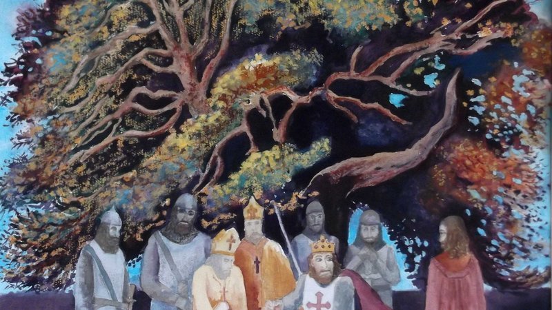 Here we are back at the Yew tree at Runnymede, sometimes known as the Ankerwycke Yew! Since this is the 3rd time this tree has been featured I thought I'd show it in one of my paintings, to avoid overload!