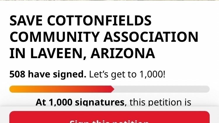 First and foremost I would like to thank each and every one of you who have signed this petition. A special thanks to those who have donated to keep this petition reaching the top of daily searches within this platform. Cottonfields Community subdivision consists of 450 single family residential properties. We’ve received support from nearby communities throughout Laveen and people across the country. Thank you!