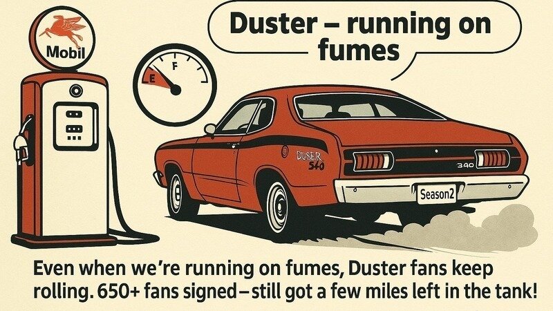 Thank you so much to everyone who has signed and shared—because of you, we’ve reached over 650 signatures! As Duster fans, we know how to keep rolling even when we’re running on fumes.
