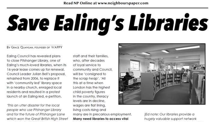to my article in the Neighbours’ Paper (issue 88) that features the new cuts planned for Ealing Libraries, and the Save Ealing’s Libraries Change.Org campaign. I’ll be placing hard copies in various libraries, churches, and other public spaces. Please feel free to circulate widely, especially as ‘Ealing Gazette’, ‘Get West London’ and ‘My London’ (our local paper in the borough of Ealing is recently reconstituted, though hard to locate or identify) do not seem to have covered much on the proposed changes to Ealing’s Library Services since August 2018. I could be wrong. Please correct me if I am?
