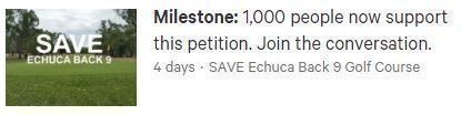 Petition updateSAVE Echuca Back 9 Golf CourseTHANK YOU!! - 1,000 Signatures reached in 4 Days - Please keep sharing!
