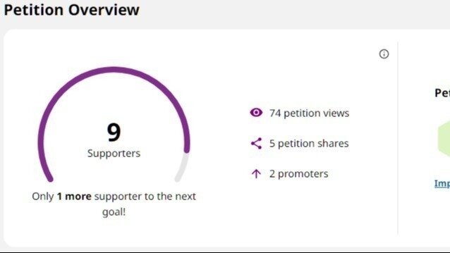 This petition has 9 supporters so far. Only 1 more to reach next goal.
