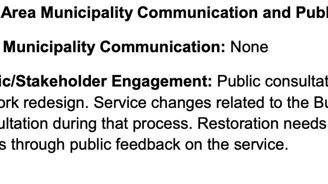 Area Municipality Communication and Public/Stakeholder Engagement: Area Municipality Communication: None