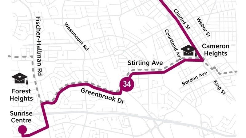 - Extend Route 34 to Sunrise Centre Station to provide service along Stirling/Greenbrook