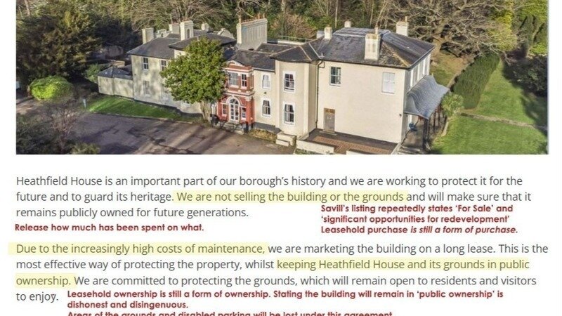 Croydon Council claim they are 'not selling' Heathfield. However;
